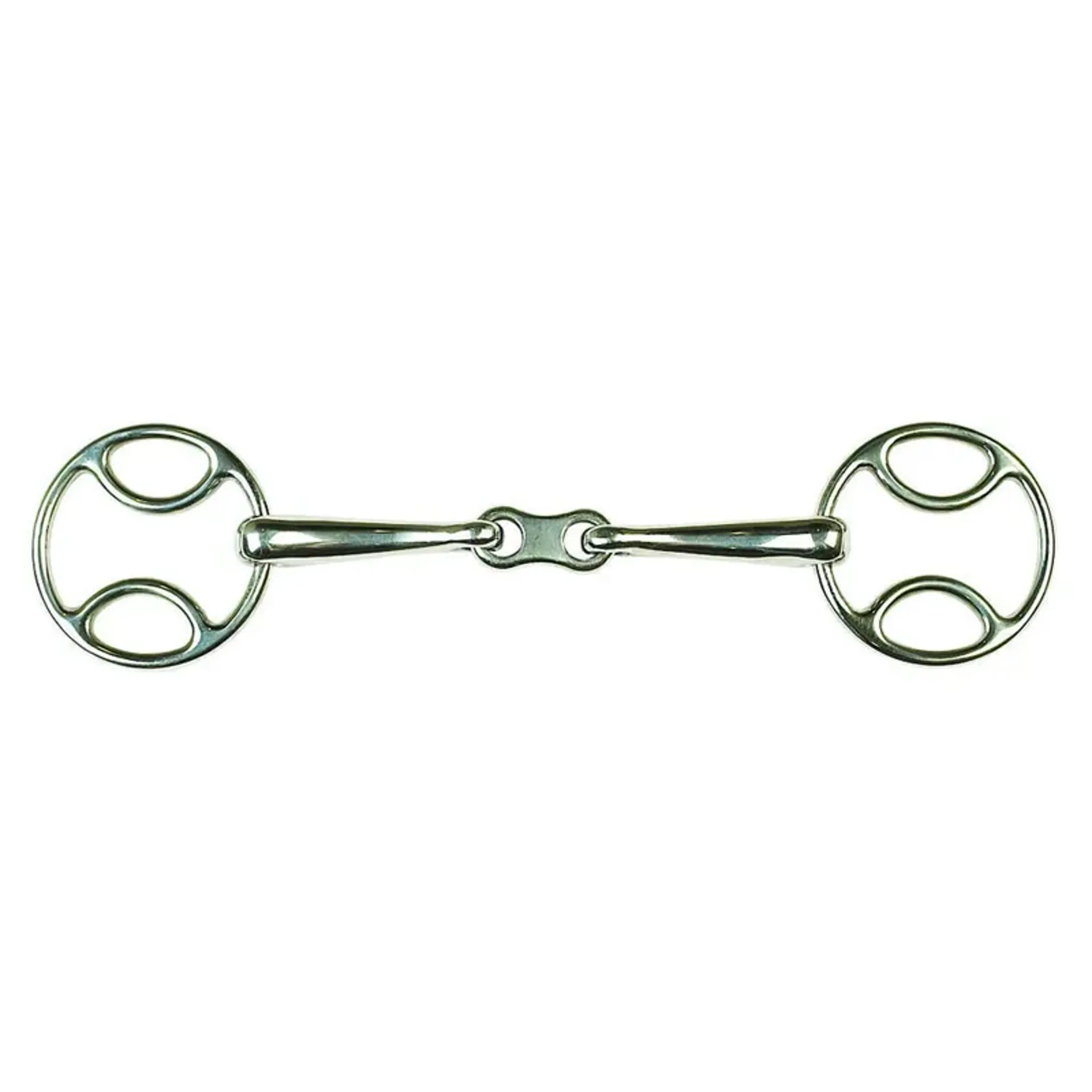 French link softens the action- good for ponies that tend to throw their heads up in a jointed bit.