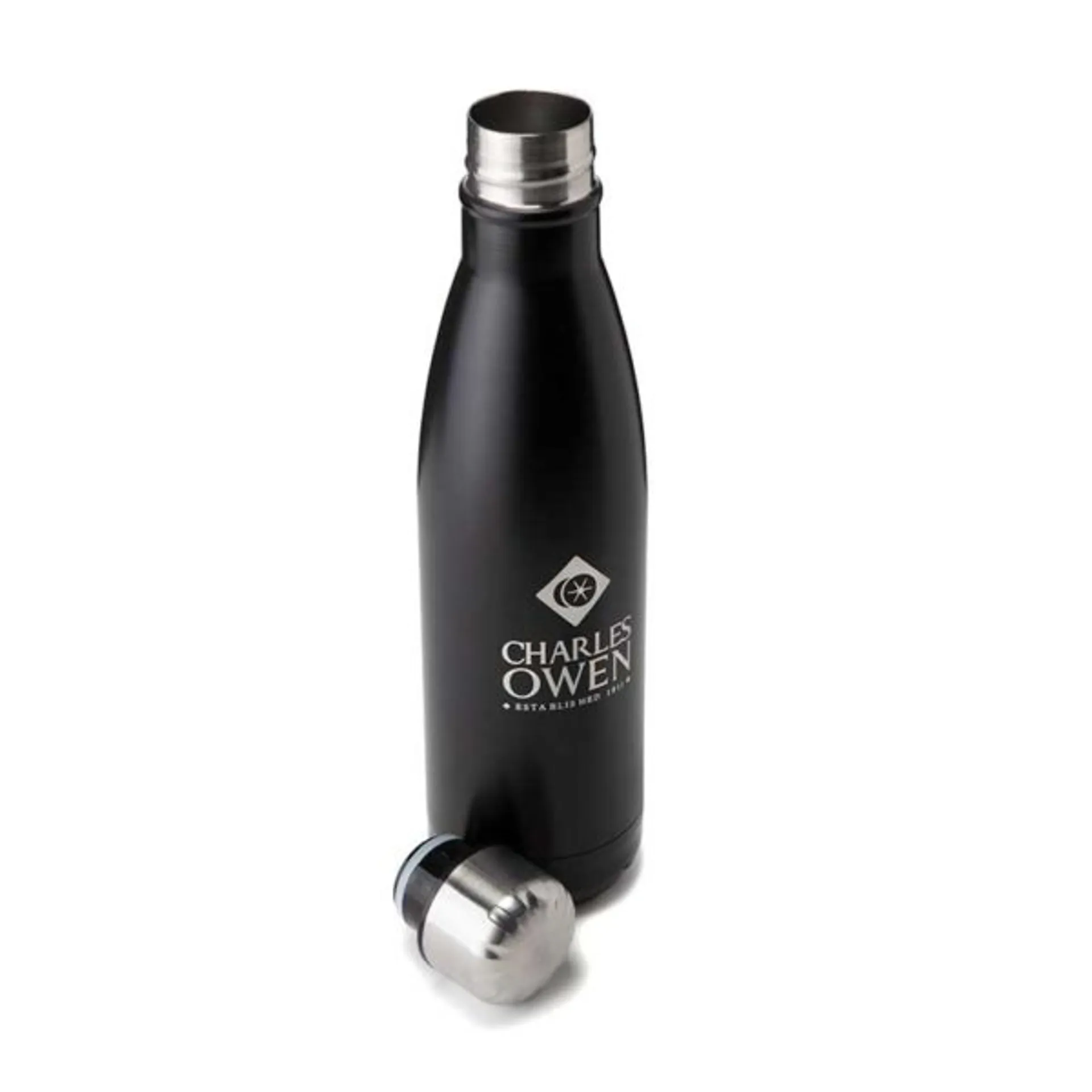 This Charles Owen branded drinks bottle is made from durable, high-grade 304 stainless steel and thermos insulated.